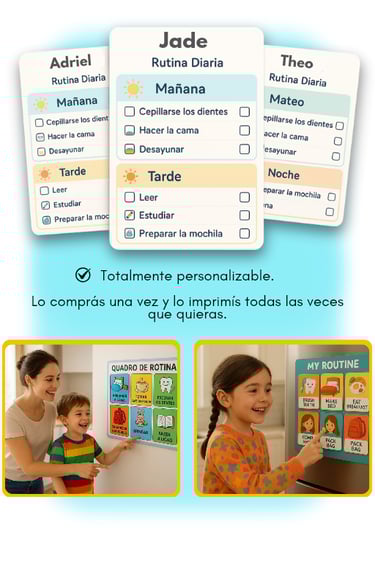 ✅ Más de 10 rutinas visuales listas para imprimir (mañana, tarde, noche y mucho más)